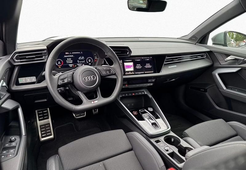 Audi S3 Sportback con scarico sportivo Akrapovic, trazione quattro e cambio automatico. Una sportiva compatta ad alte prestazioni che unisce potenza, precisione di guida e un sound inconfondibile, senza rinunciare a comfort e tecnologia premium.