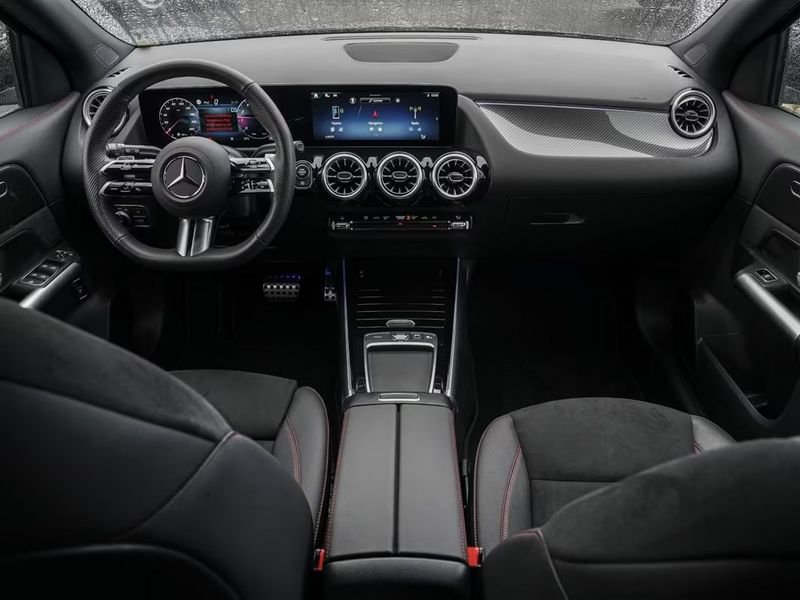 Inserti pregiati: nero pianoforte sulla consolle centrale, scamosciato sulle portiere e look carbonio sul cruscotto